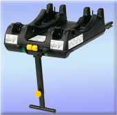 Замки (механизмы фиксации) смонтированы на двух направляющих, которые жестко установлены у основания каркаса автокресла или его платформы. При закреплении автокресла они легко защелкиваются на скобах, а для разблокировки замков при снятии достаточно нажать на кнопки.