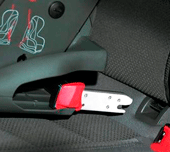 Снижение нагрузки на основные крепления и ограничение углового перемещения удерживающего устройства с Изофикс обеспечивает якорный ремень – так называемая третья точка фиксации кресла в автомобиле. Он крепится за специальную скобу (если таковая предусмотрена в салоне), удерживая верхнюю часть спинки автокресла.